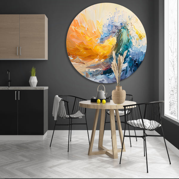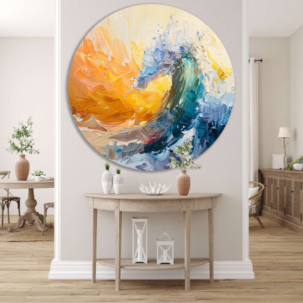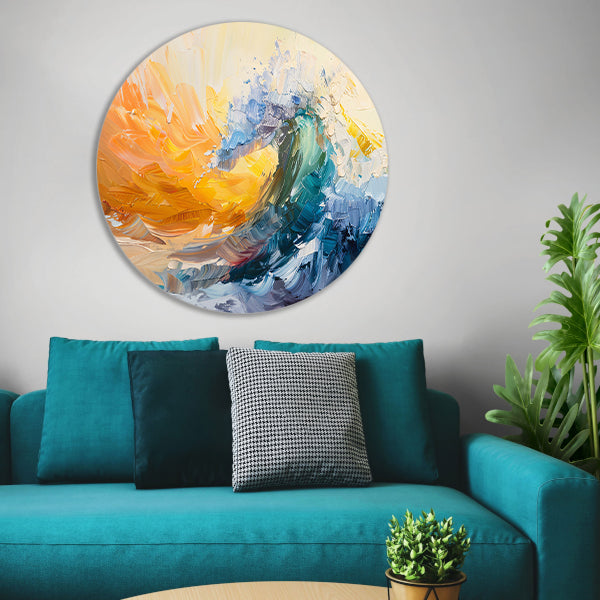 Abstract schilderij van een golf in zonsondergang forex muurcirkel