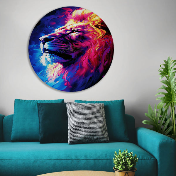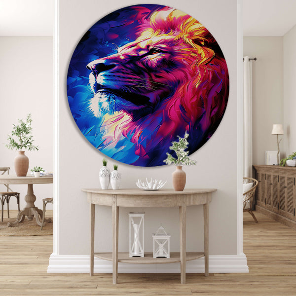 Abstract schilderij van een kleurrijke leeuw forex muurcirkel
