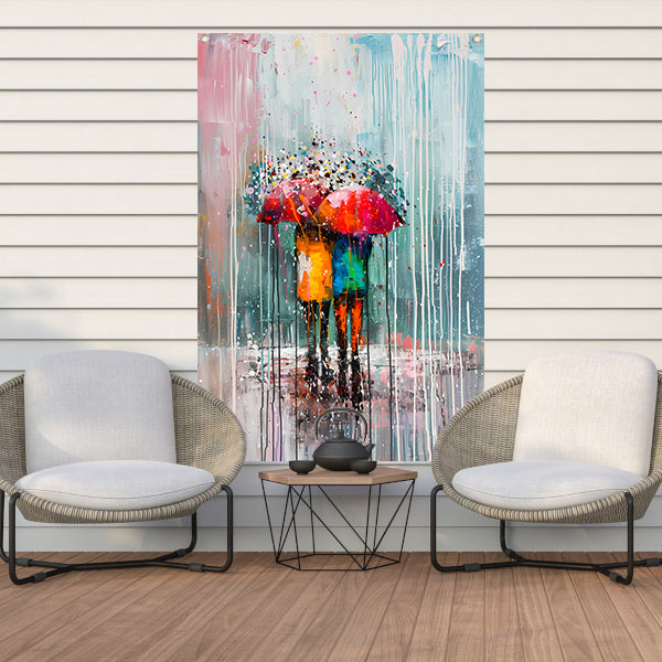 Abstract schilderij van een koppel onder paraplu tuinposter