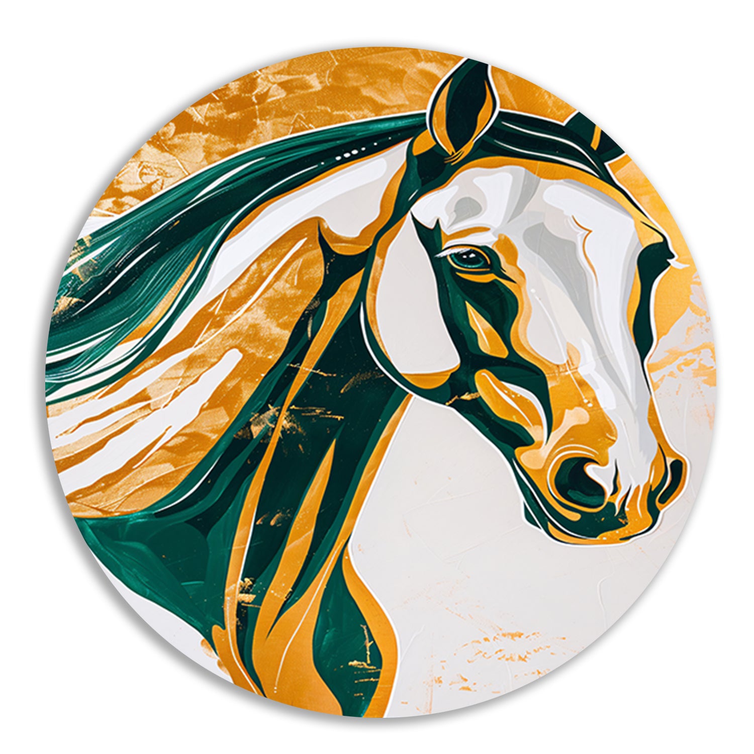 Met dit abstracte schilderij van een paard haal je een stukje kunst in huis dat gegarandeerd de aandacht trekt. Of je nu een liefhebber bent van paarden of gewoon op zoek bent naar een uniek en stijlvol kunstwerk, deze muurcirkel is een absolute aanwinst voor jouw interieur. Laat je inspireren door de schoonheid van dit prachtige schilderij en geef je interieur een artistieke touch!
