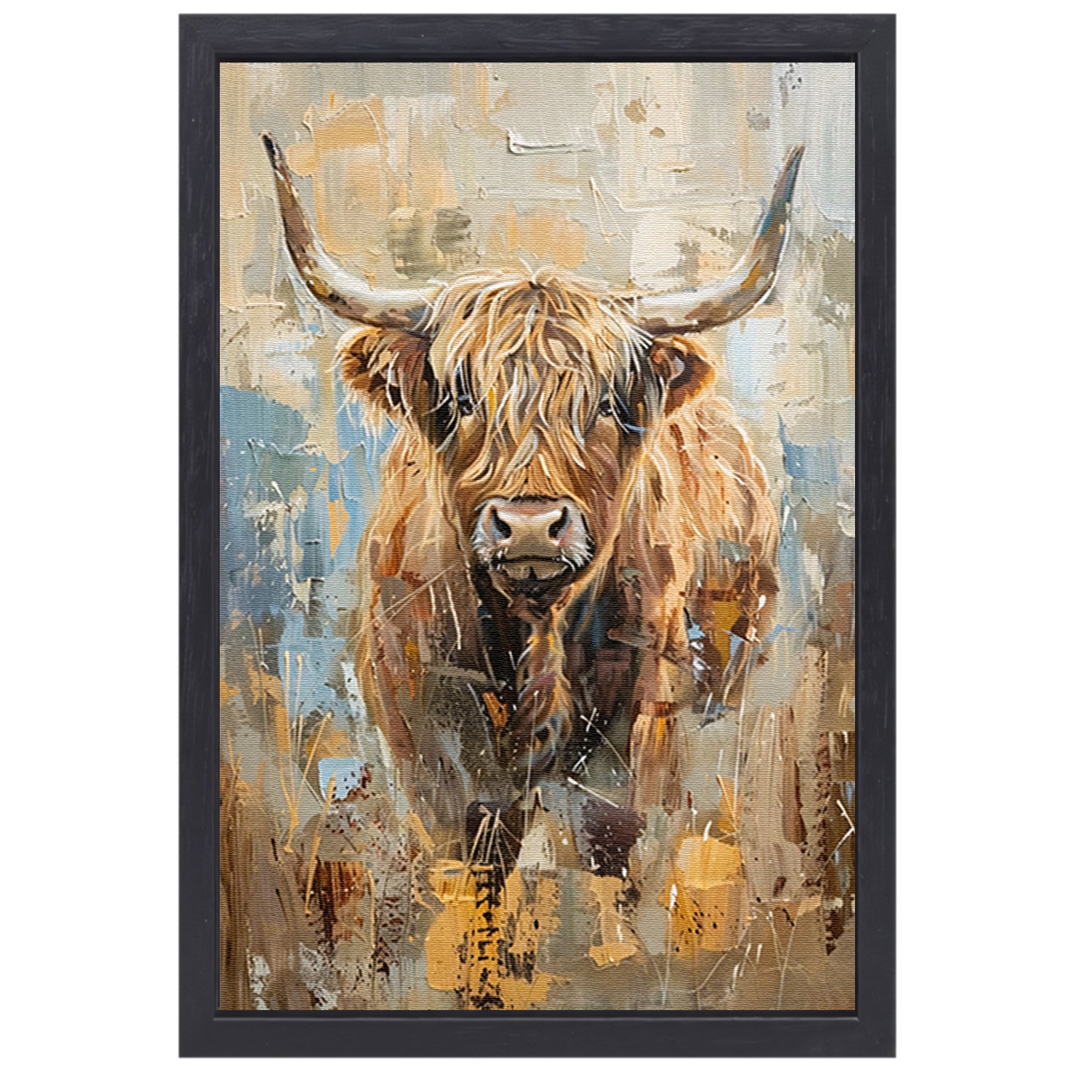 Abstract schilderij van een Schotse hooglander canvas met baklijst