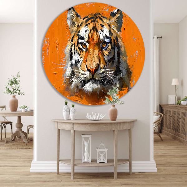 Abstract schilderij van een tijgerportret forex muurcirkel