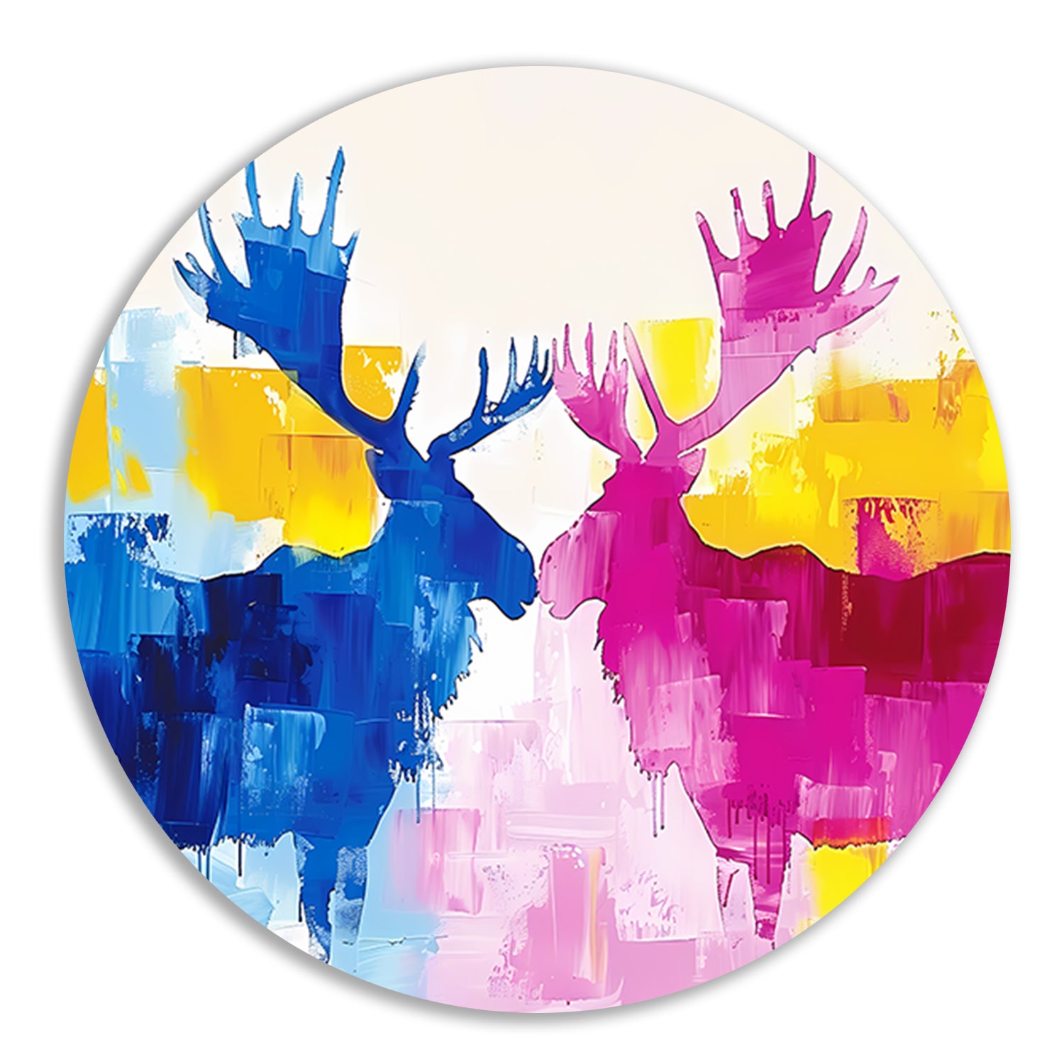 Abstract schilderij van elanden in felle kleuren aluminium muurcirkel