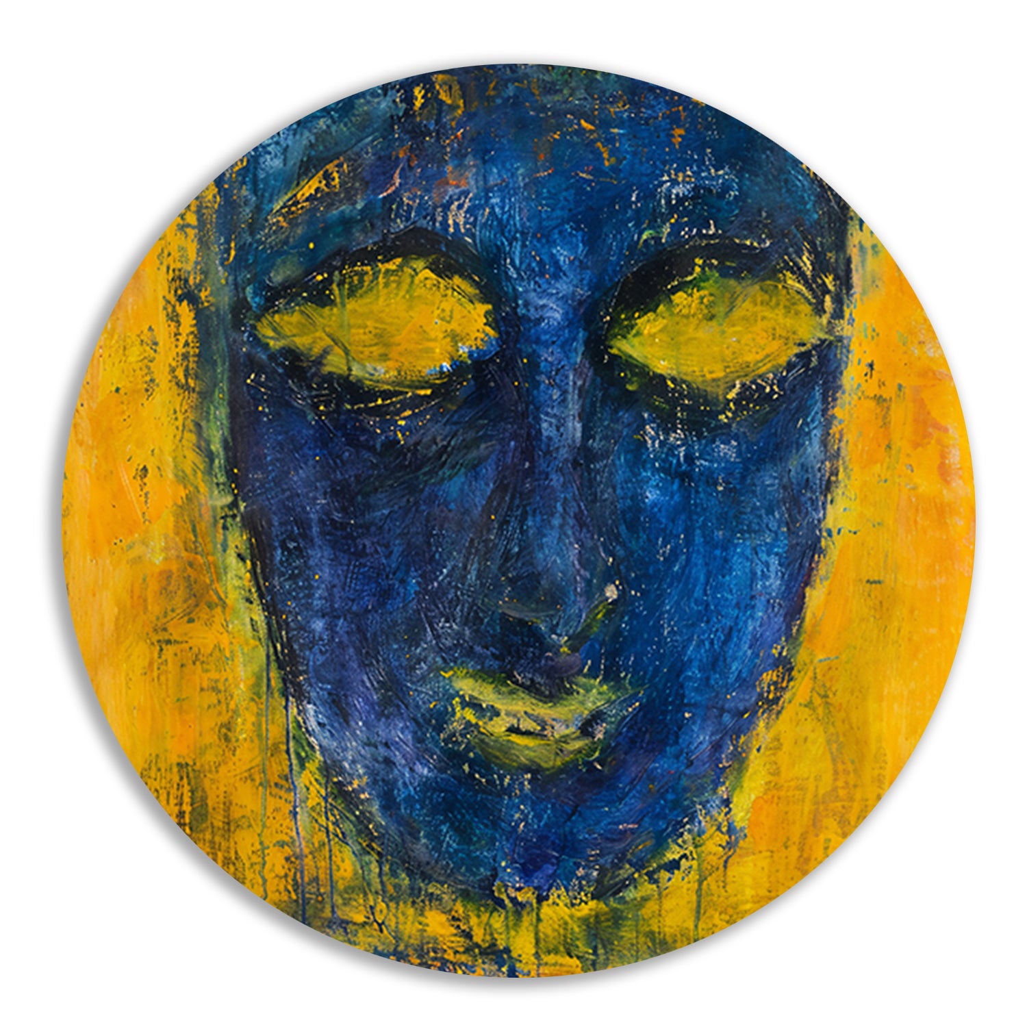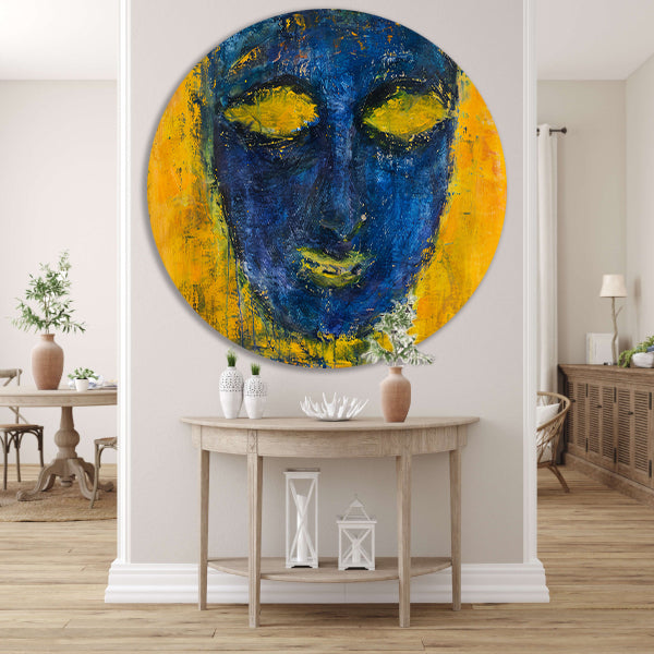 Abstract schilderij van gezicht in kleuren forex muurcirkel