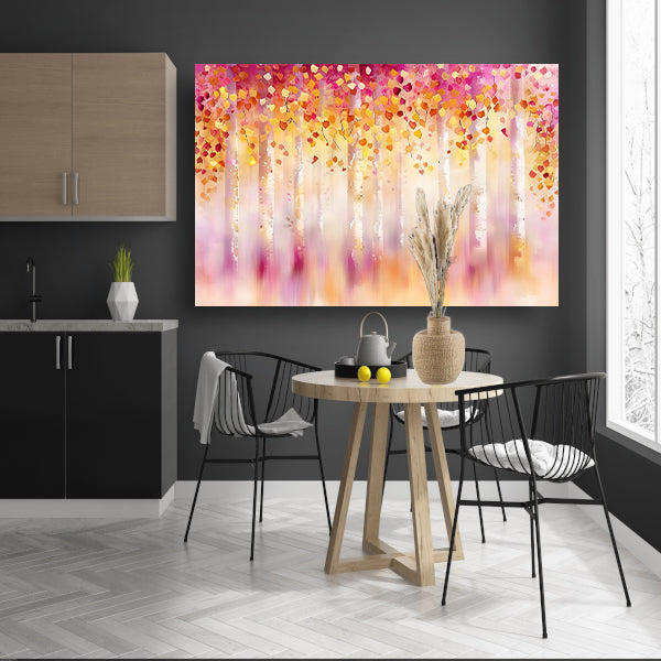 Abstract schilderij van kleurrijk herfstbos canvas met baklijst