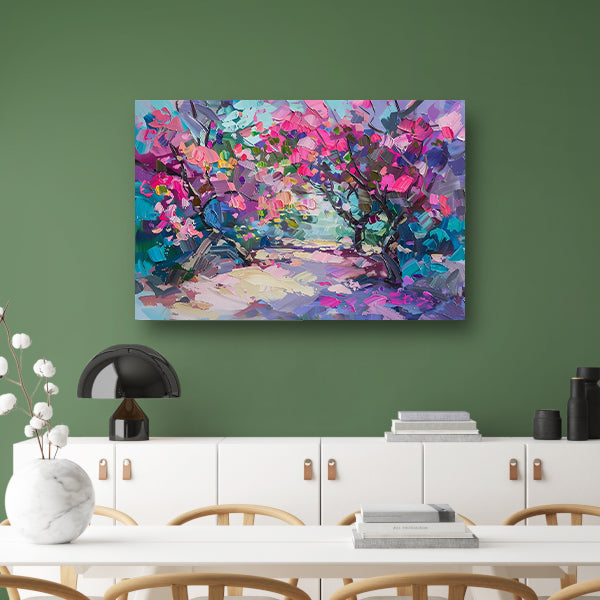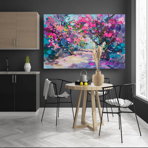 Abstract schilderij van kleurrijke bloemen en bomen acrylglas