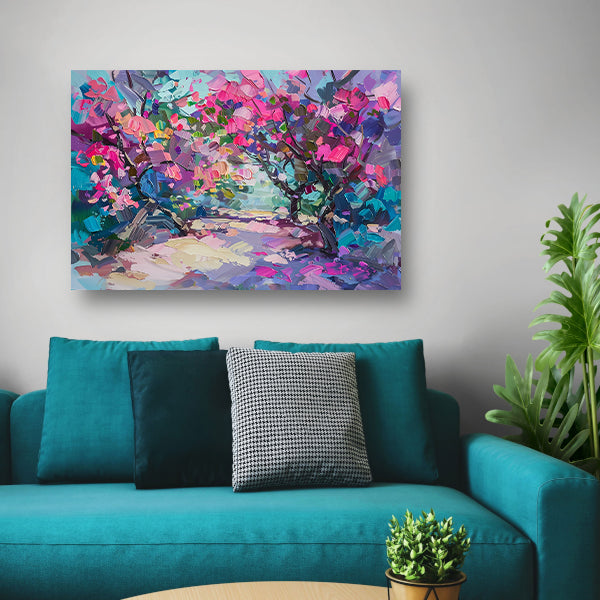 Abstract schilderij van kleurrijke bloemen en bomen poster