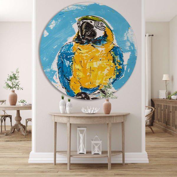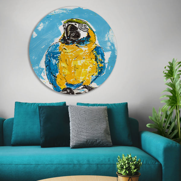 Abstract schilderij van kleurrijke papegaai aluminium muurcirkel
