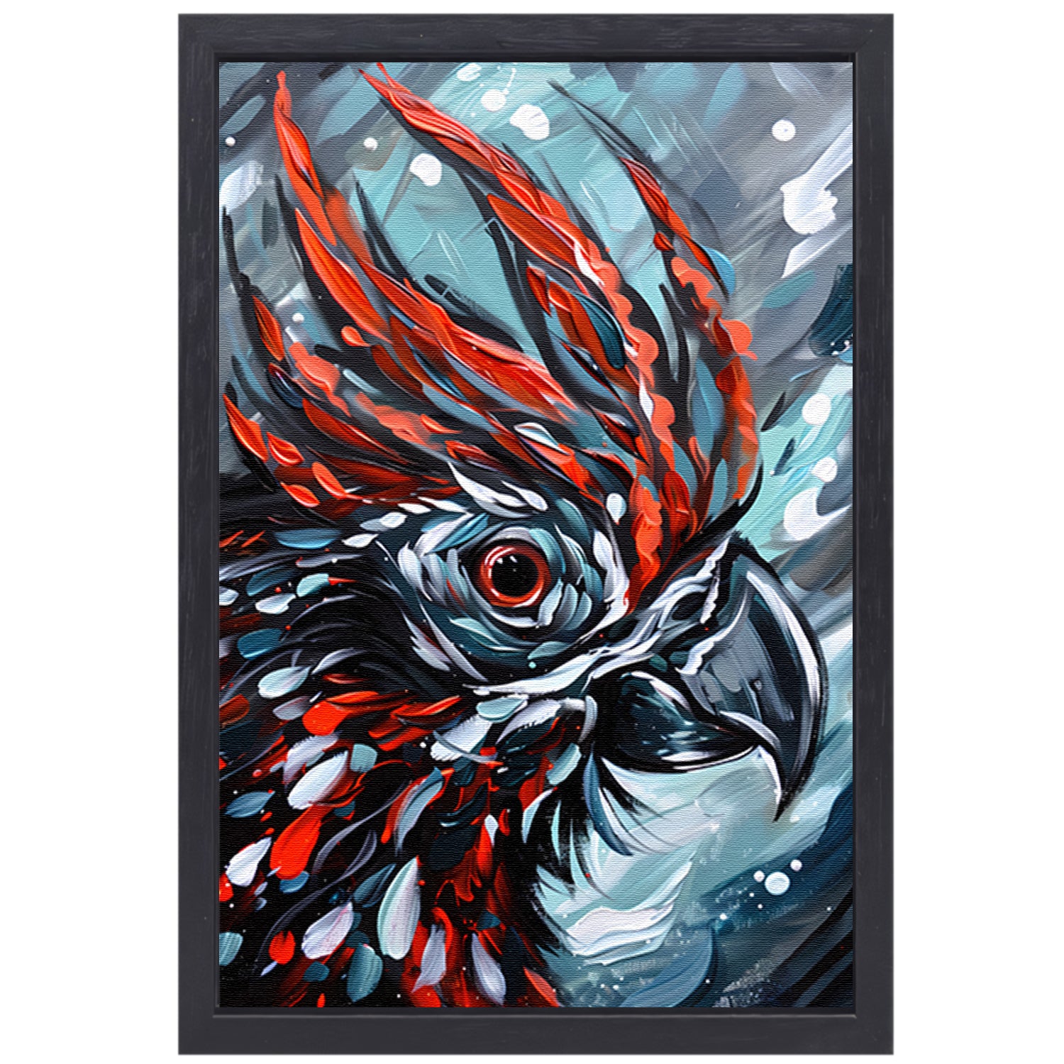 Abstract schilderij van kleurrijke papegaai canvas met baklijst