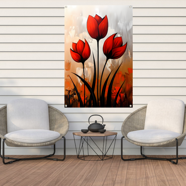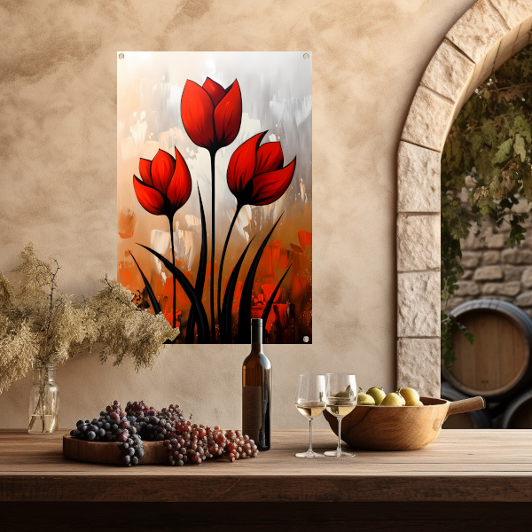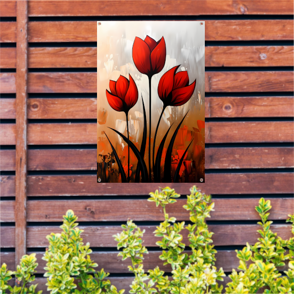 Onze tuinposters zijn UV- en waterbestendig, waardoor ze bestand zijn tegen zon en regen en hun kleuren langdurig mooi blijven. Alle tuinposters van De Muurdecoratie zijn voorzien van ringen in de hoeken, zodat je ze eenvoudig kunt ophangen. Let op: onze tuinposters worden niet met ophangsysteem geleverd.