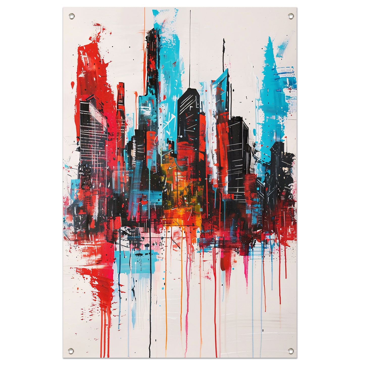 Abstract schilderij van stadsgezicht met kleuren tuinposter