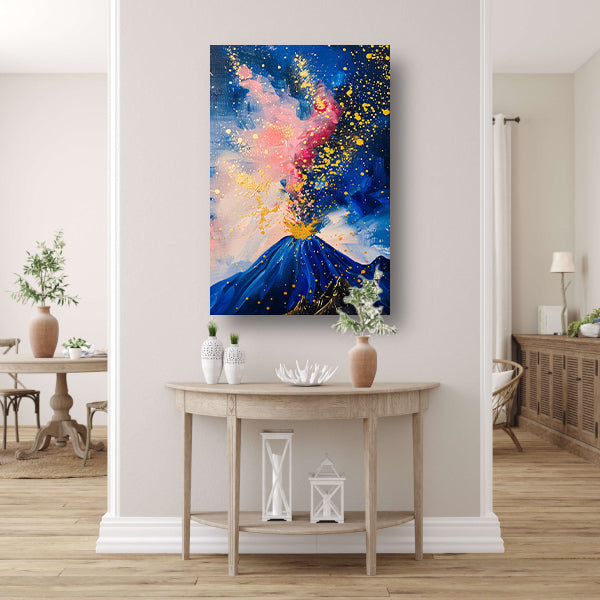 Abstract schilderij van vulkaanuitbarsting canvas met baklijst