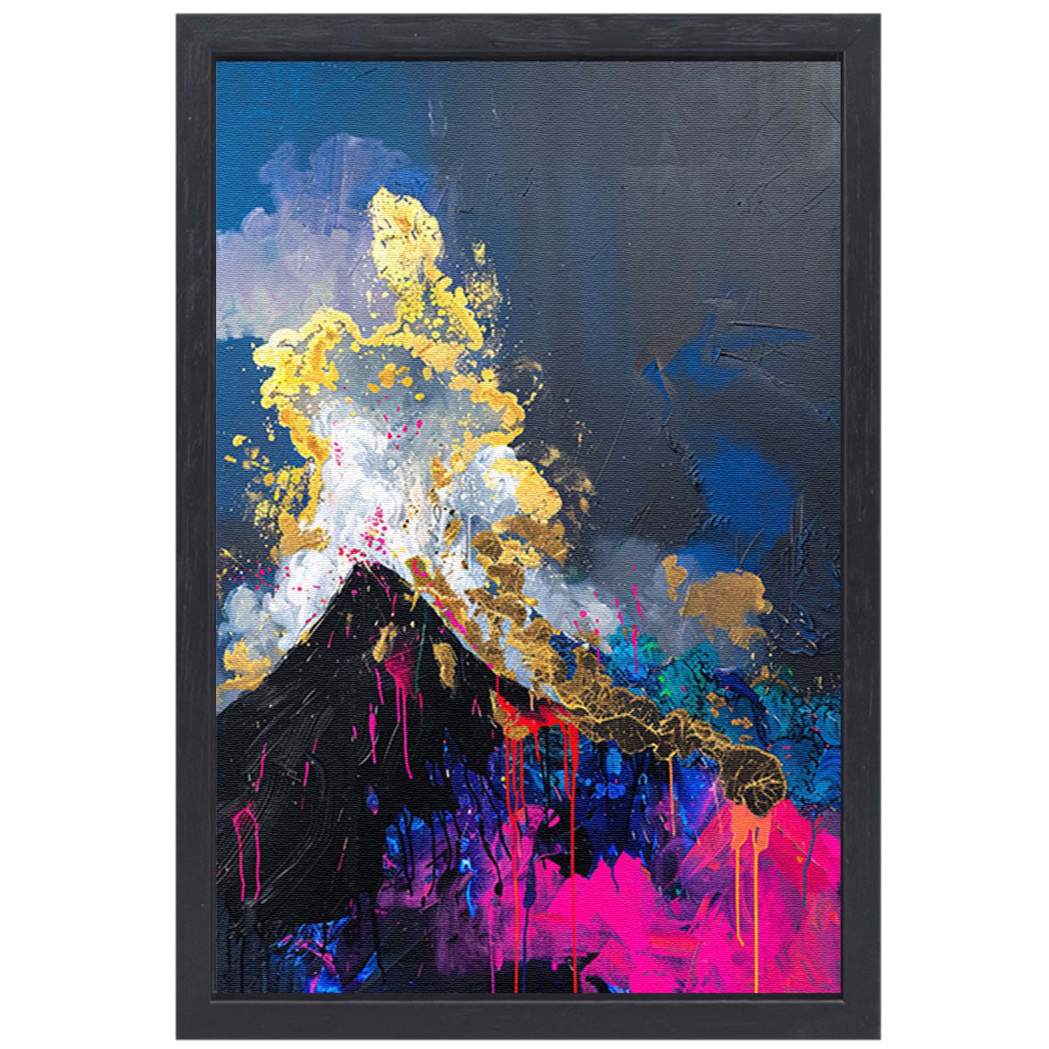Abstract schilderij van vulkaanuitbarsting canvas met baklijst