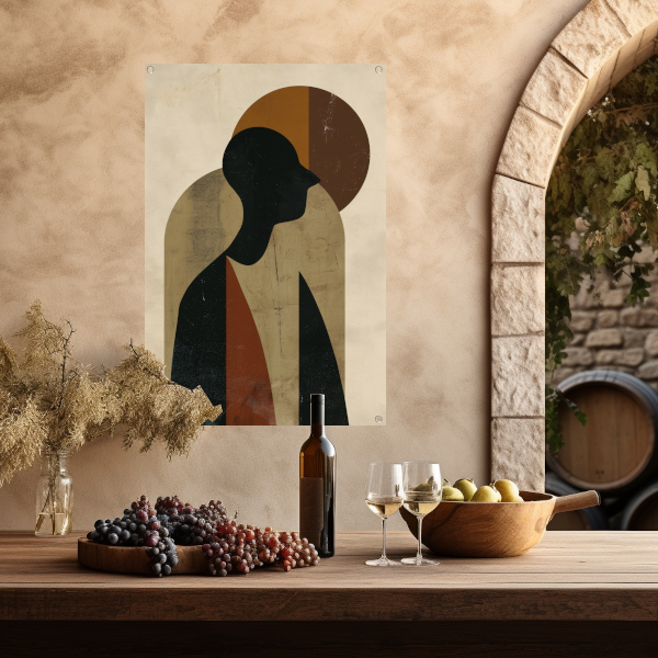 Abstract silhouet met geometrische vormen en neutrale kleuren tuinposter
