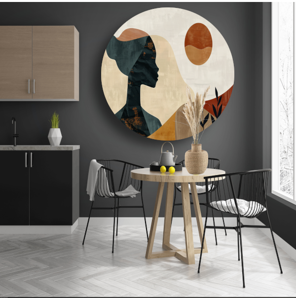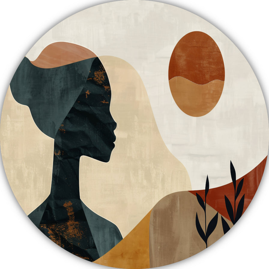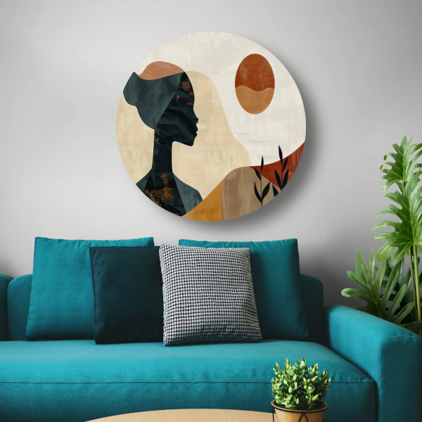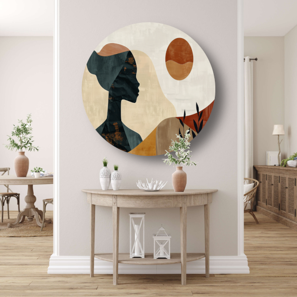 Abstract silhouet van een vrouw met natuurlijke kleuren forex muurcirkel
