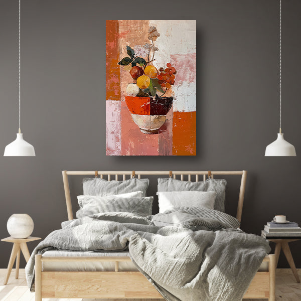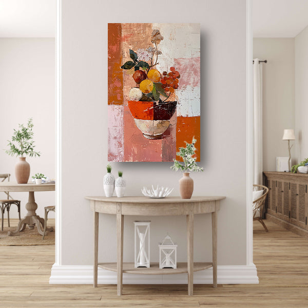 Abstract stilleven met fruit en bloemen canvas met baklijst