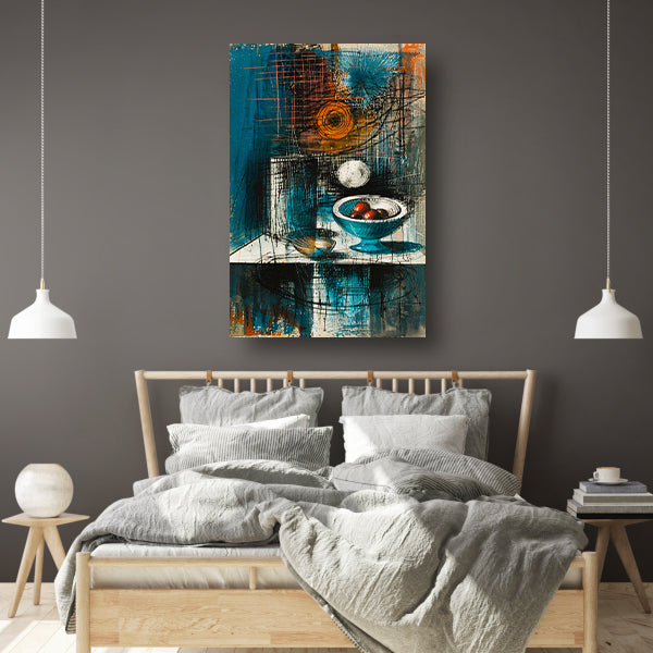 Abstract stilleven met schaal en fruit canvas met baklijst