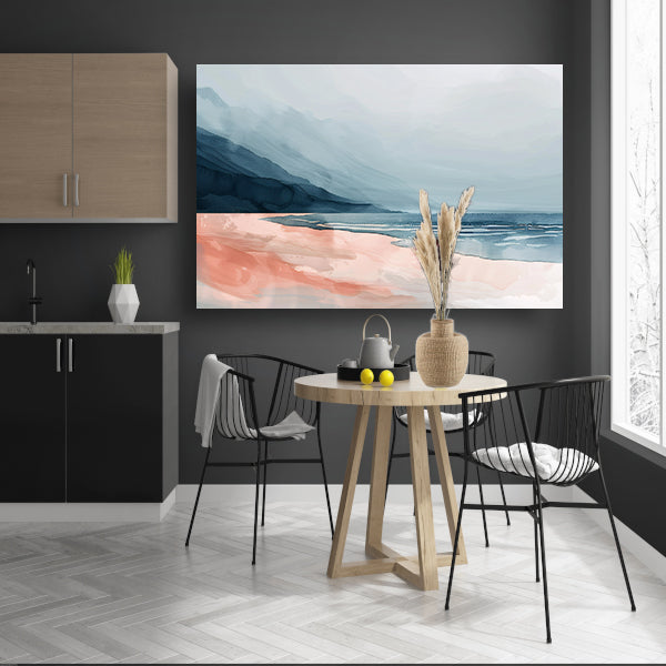 Abstract strandlandschap met bergen en mist canvas