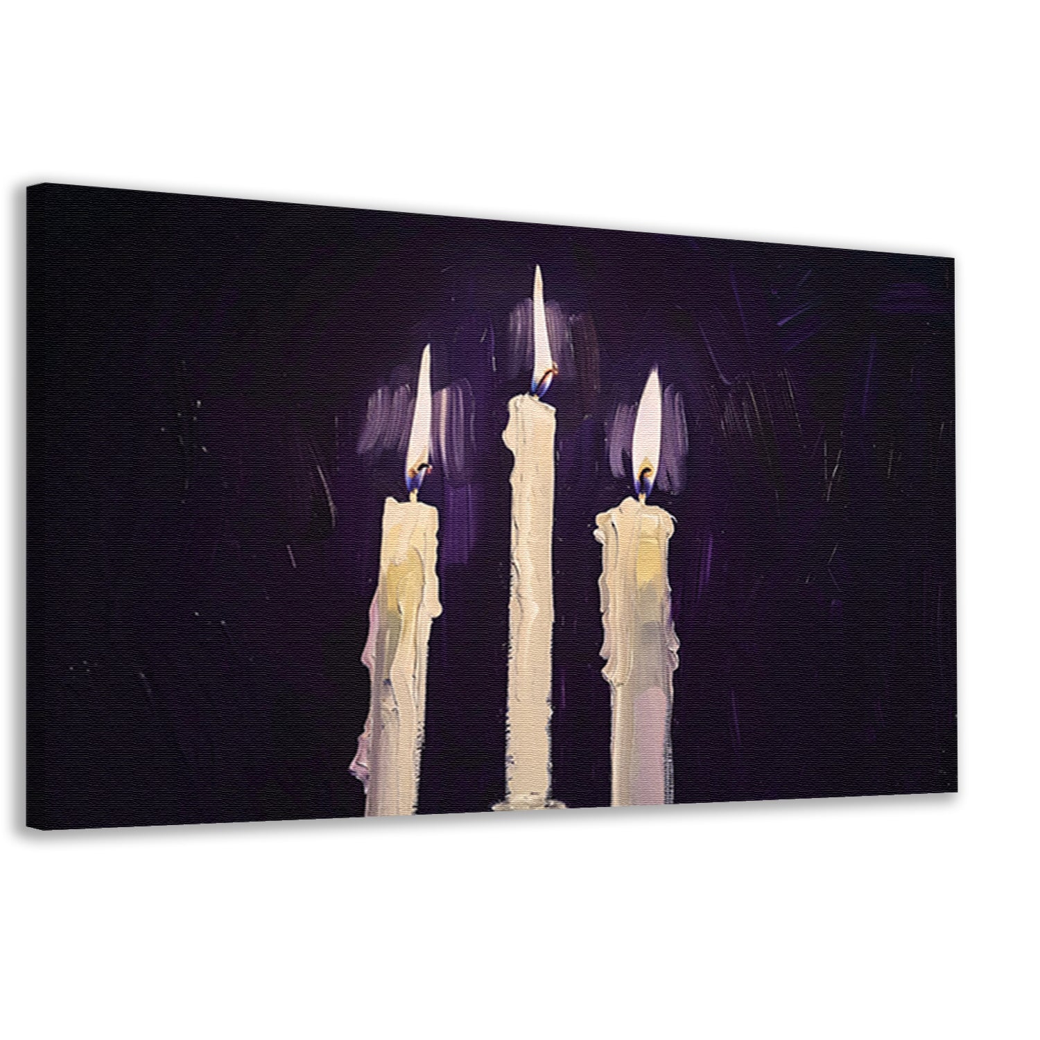 Abstract surrealistisch schilderij van drie kaarsen canvas