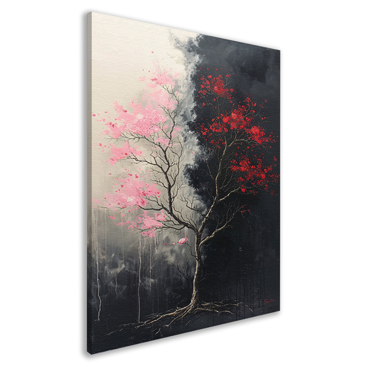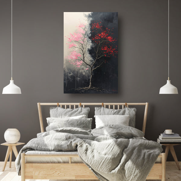 Abstract van boom met roze en rode bladeren canvas