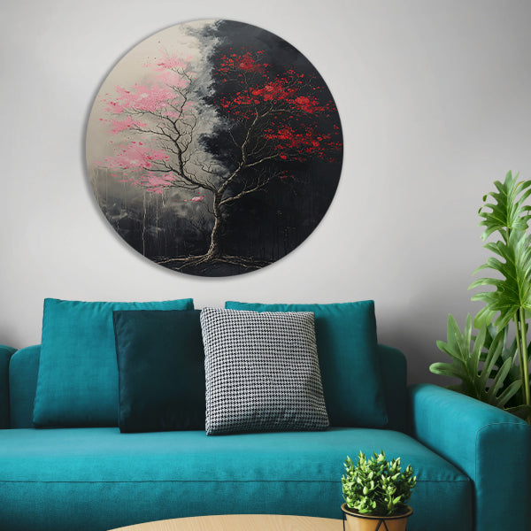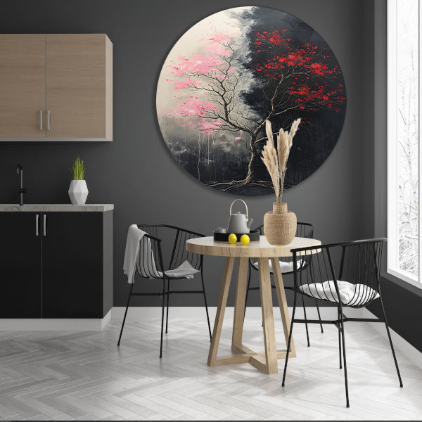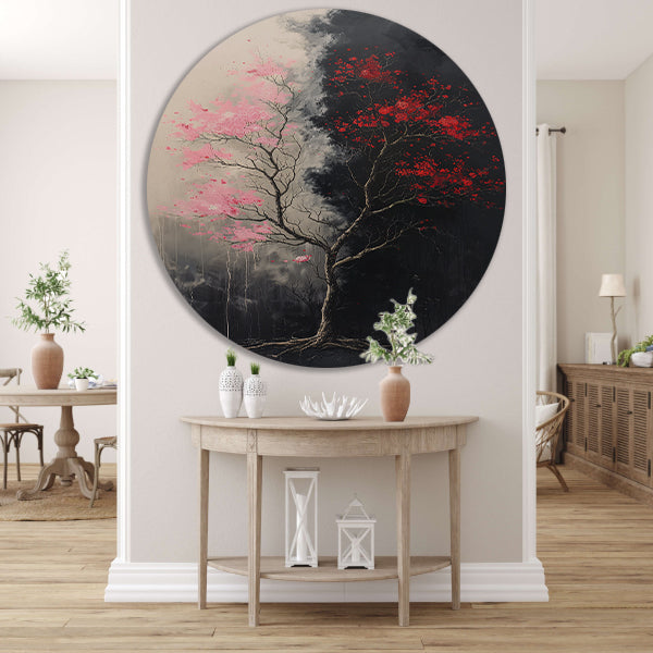 Abstract van boom met roze en rode bladeren forex muurcirkel