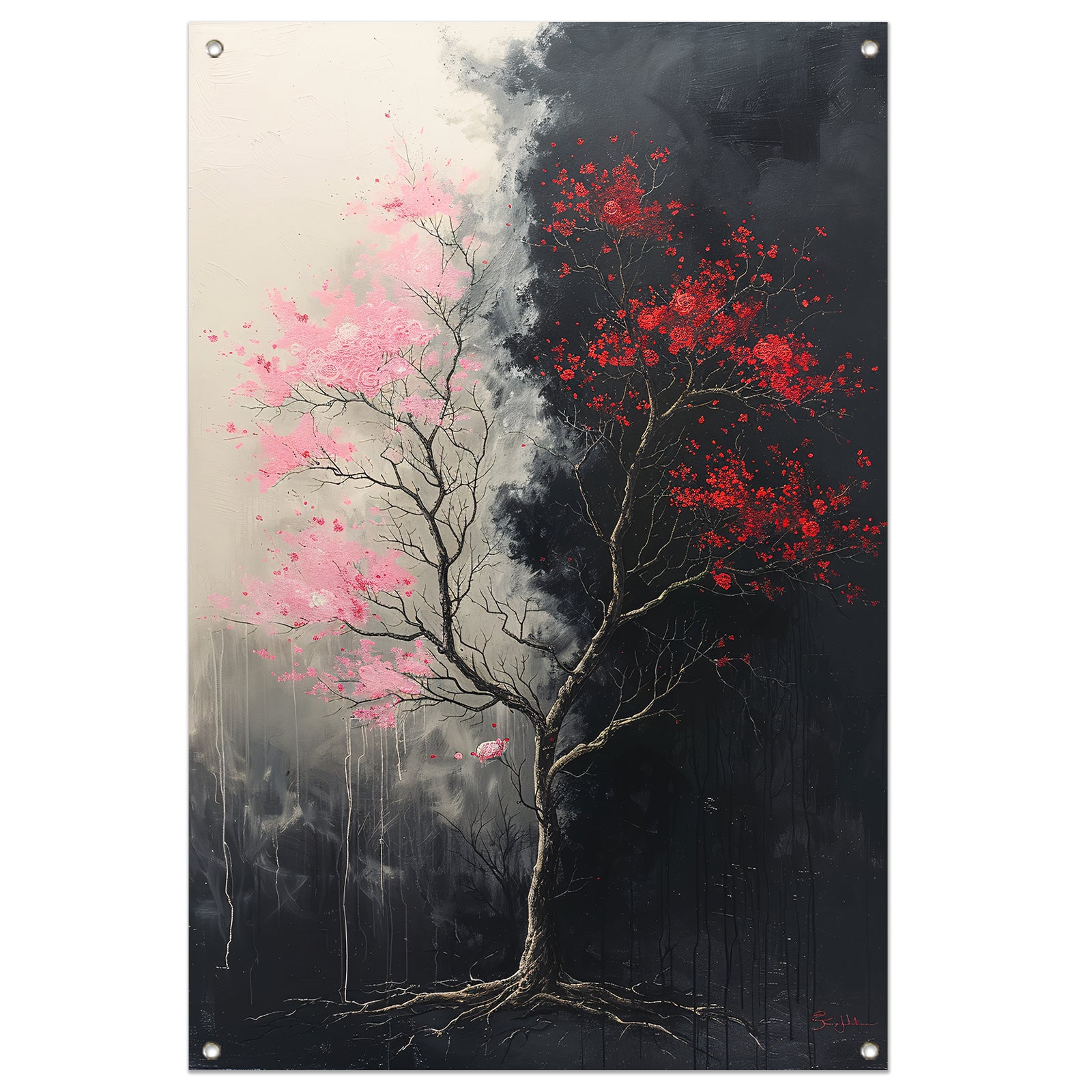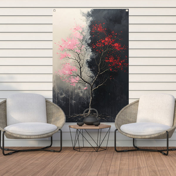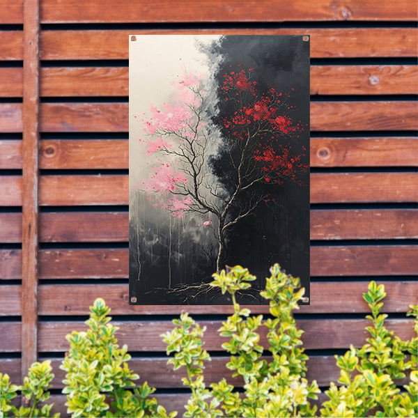 Abstract van boom met roze en rode bladeren tuinposter