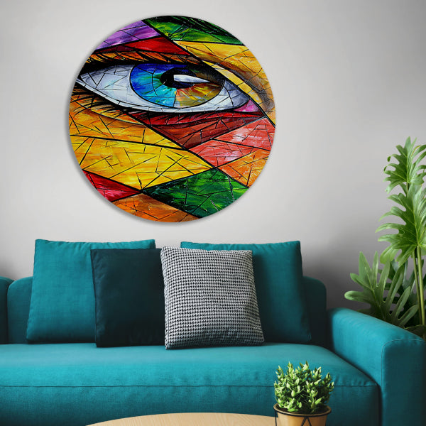 De levendige kleuren en het abstracte design van het oog zorgen voor een eyecatcher in elke kamer. Of je nu een statement wilt maken in de woonkamer, slaapkamer of kantoor, deze muurcirkel zal zeker de aandacht trekken en een stijlvolle touch toevoegen aan je interieur.