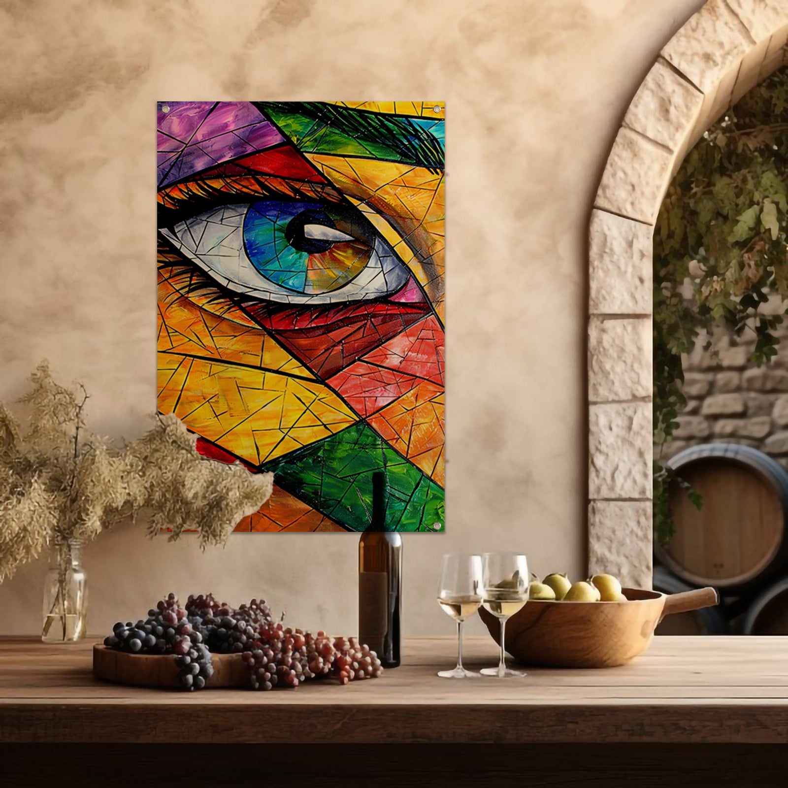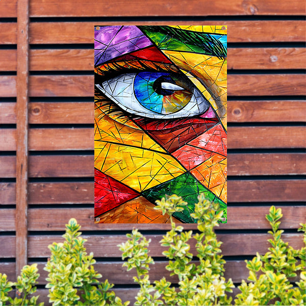 Abstract van een oog in veel kleuren tuinposter