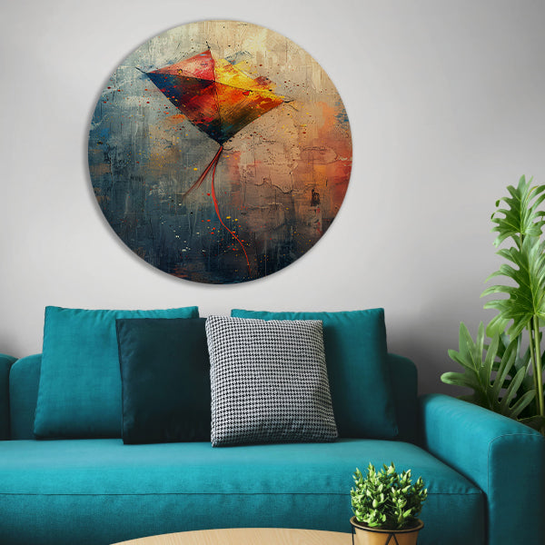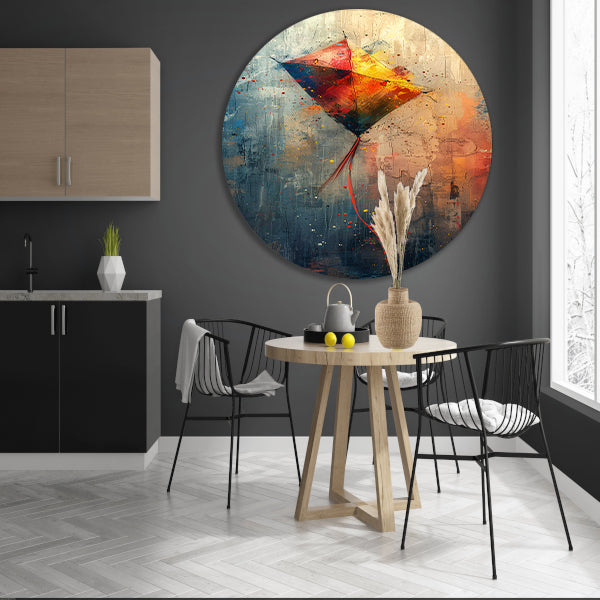 Abstract van een Vlieger in de Wind aluminium muurcirkel