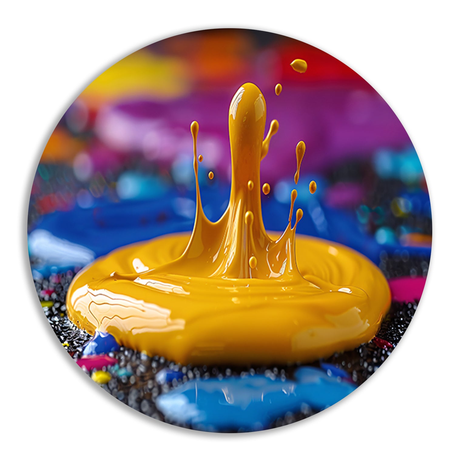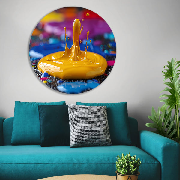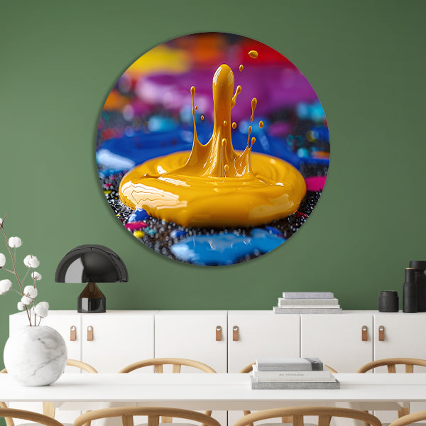 Voeg een vleugje creativiteit toe aan jouw interieur met deze Abstract Verfexplosie op Gekleurde Achtergrond forex muurcirkel en geniet van een echte blikvanger in huis!