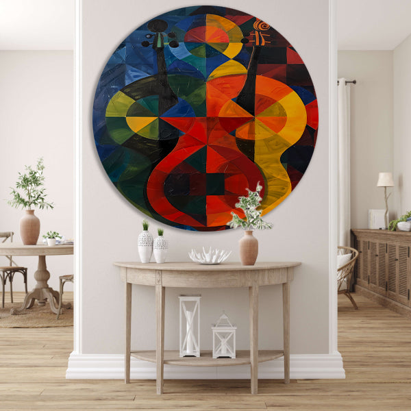 Abstract viool in Kleurrijk geometrische vormen aluminium muurcirkel