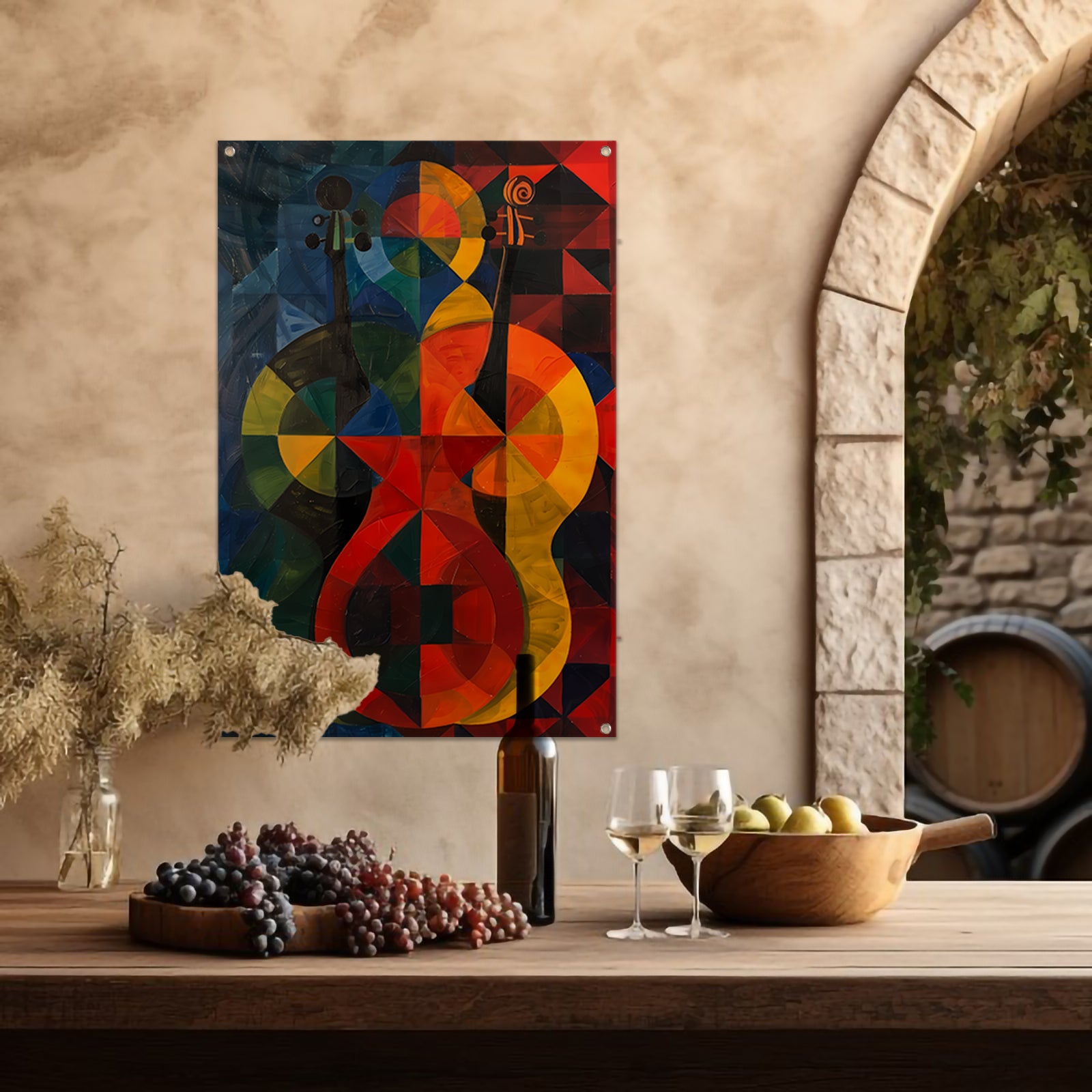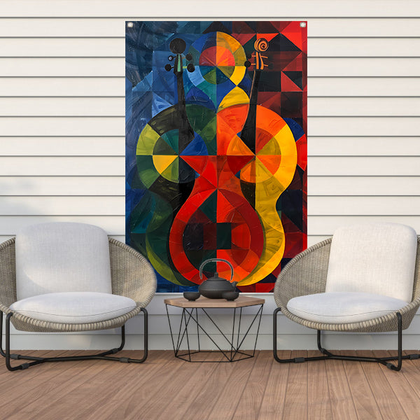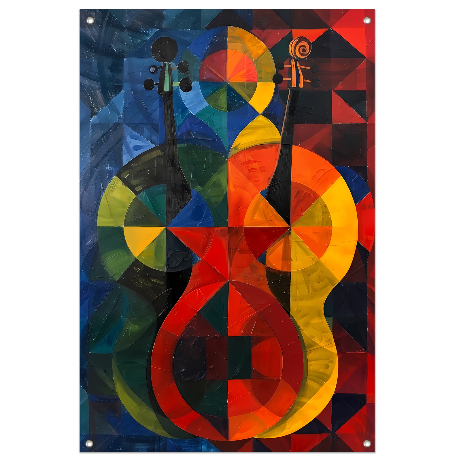 Abstract viool in Kleurrijk geometrische vormen tuinposter