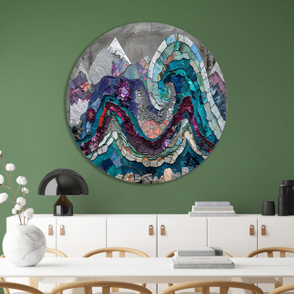 Haal nu deze Abstract Vlekken Compositie muurcirkel in huis en geef jouw interieur een eigentijdse en artistieke uitstraling. Perfect voor liefhebbers van abstracte kunst en moderne interieurs.