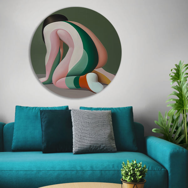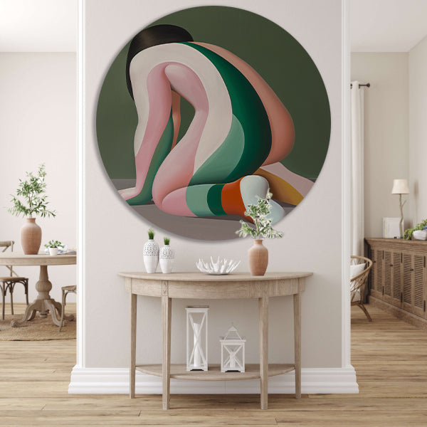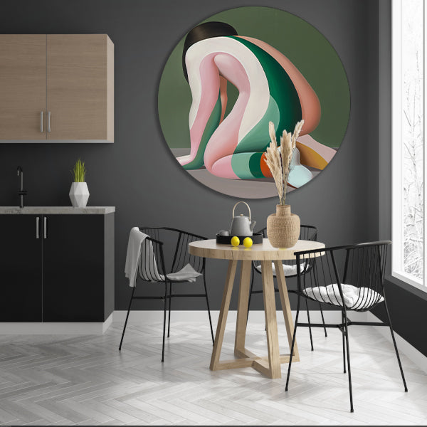 De muurcirkel wordt geleverd met een gratis ophangsysteem, waardoor je hem eenvoudig aan de muur kunt bevestigen. Door de diverse beschikbare maten kun je de muurcirkel perfect afstemmen op de ruimte waar je hem wilt ophangen. Of je nu kiest voor een kleine cirkel als subtiele toevoeging of een grote cirkel als statement piece, deze Abstract Vrouw in Gekleurde Strepen muurcirkel zal gegarandeerd de aandacht trekken.