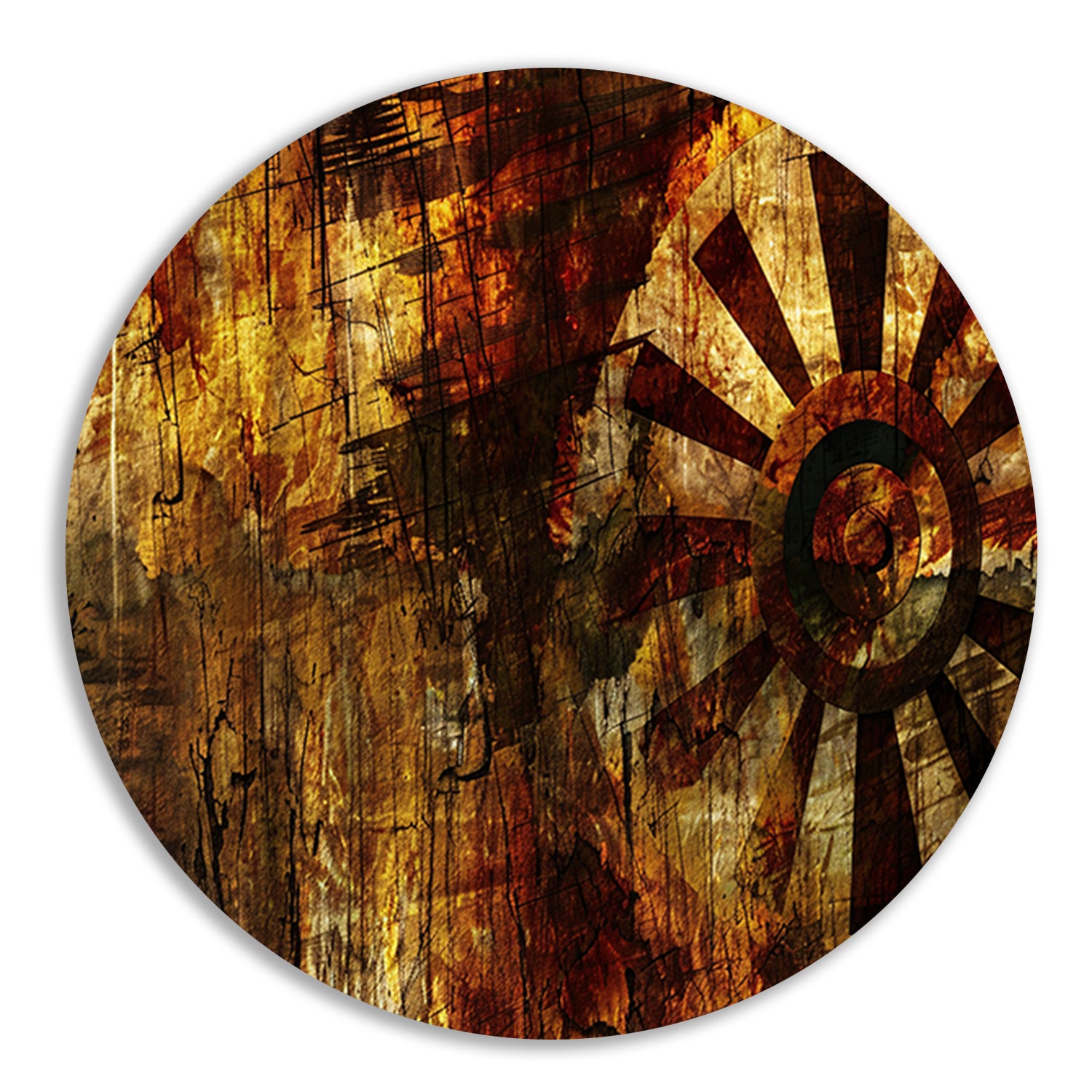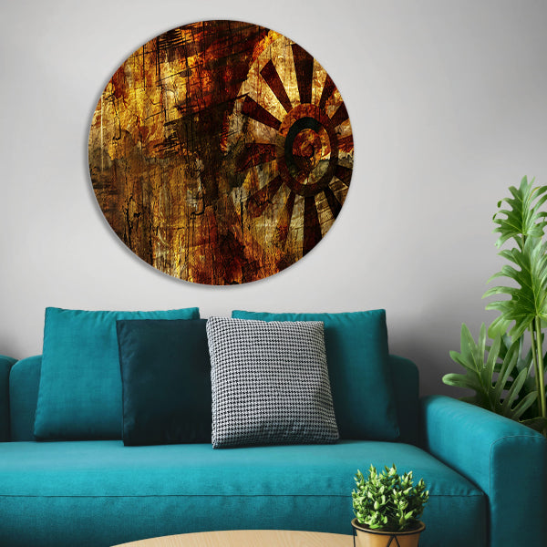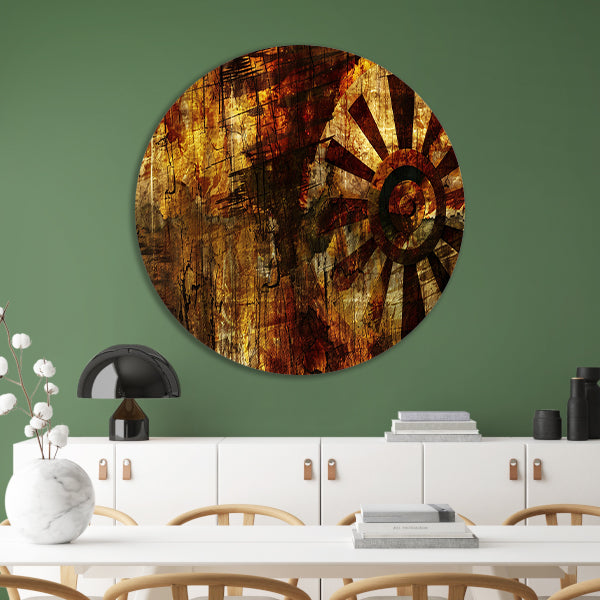 Abstract wiel met verweerde texturen aluminium muurcirkel