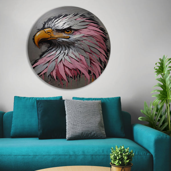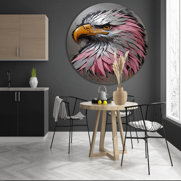 Abstract zilver en roze adelaarskop olieverfschilderij aluminium muurcirkel
