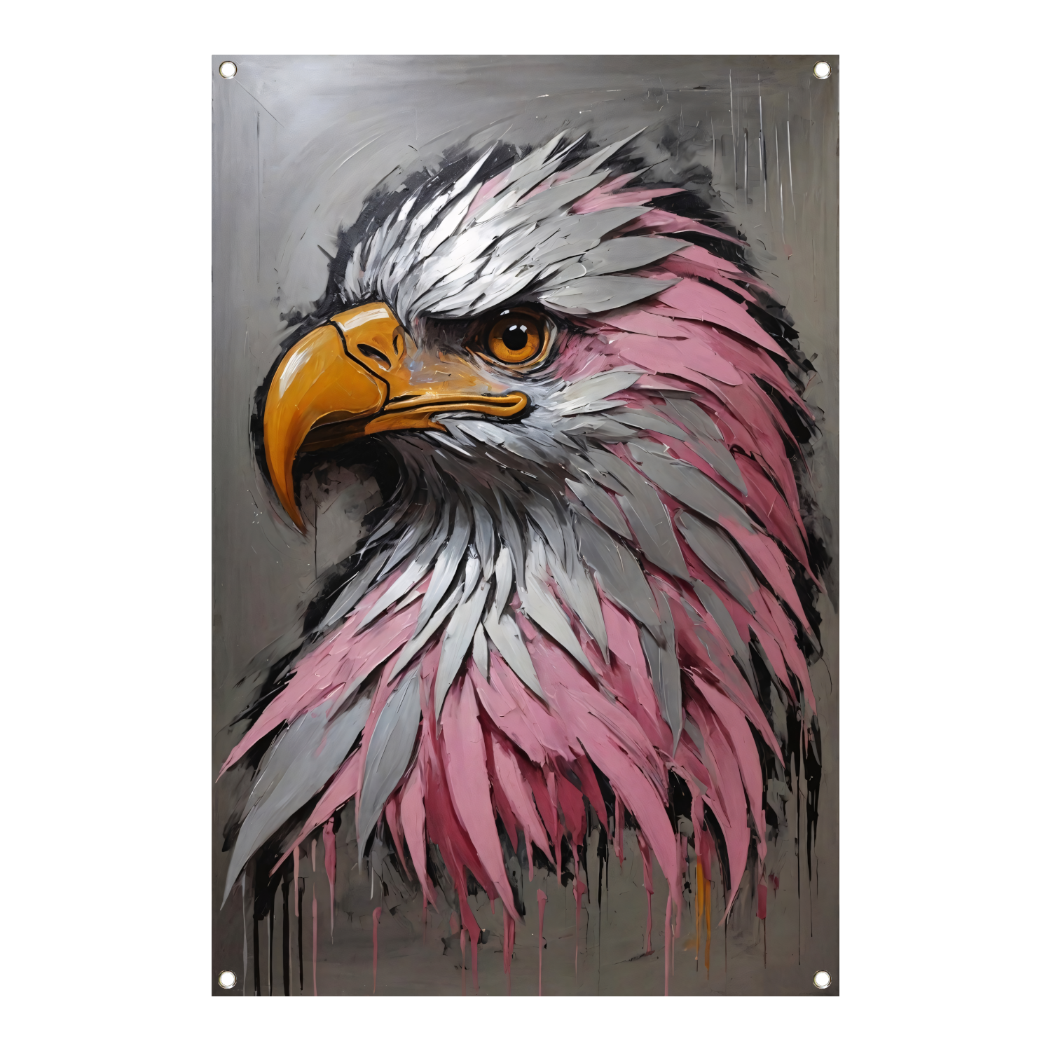 Abstract zilver en roze adelaarskop olieverfschilderij tuinposter
