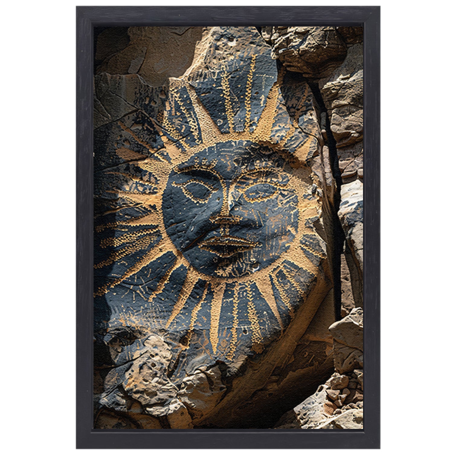Abstract zonnegelaat met symbolen canvas met baklijst