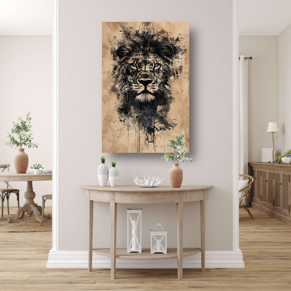 Geef je huis een creatieve boost met ons "Abstract zwart-wit leeuwenportret met verfspetters canvas". Met onze keuze aan verschillende afmetingen vind je altijd de ideale maat die bij jouw wensen past. Maak van je huis een unieke en artistieke ruimte met dit inspirerende en krachtige kunstwerk. Laat het de trots en de kracht van de leeuw in jouw leven weerspiegelen. Bestel vandaag nog en breng de wilde schoonheid van de natuur in je interieur!