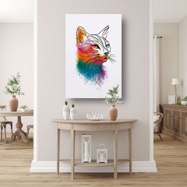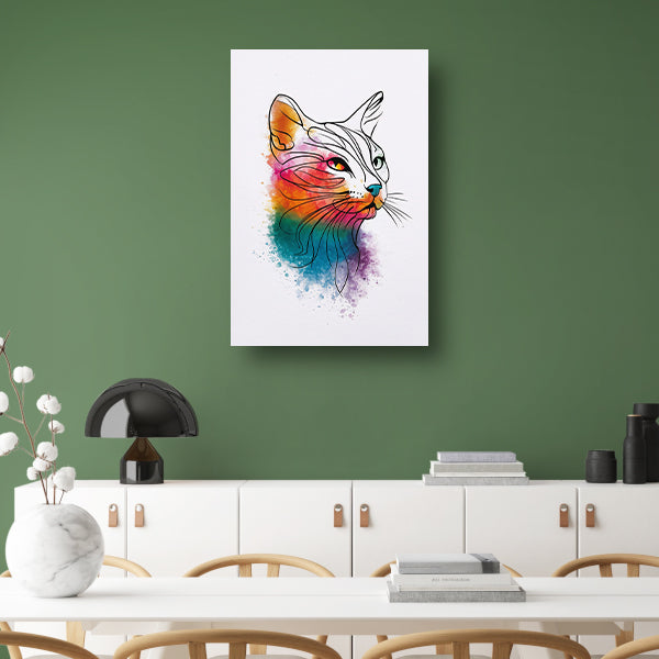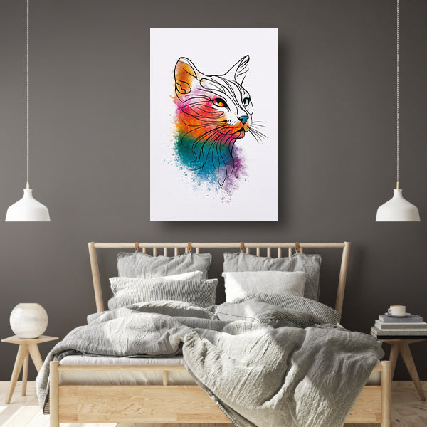 Abstracte aquarel kat met kleurexplosie canvas met baklijst