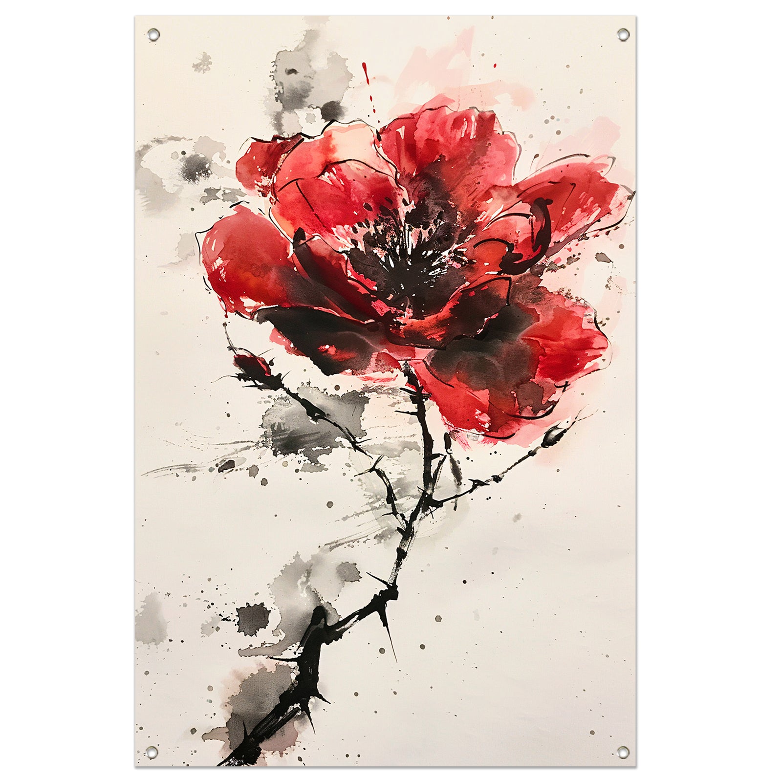 Abstracte aquarel schilderij van een rode bloem tuinposter
