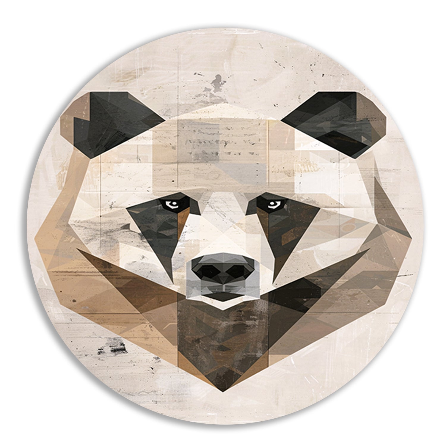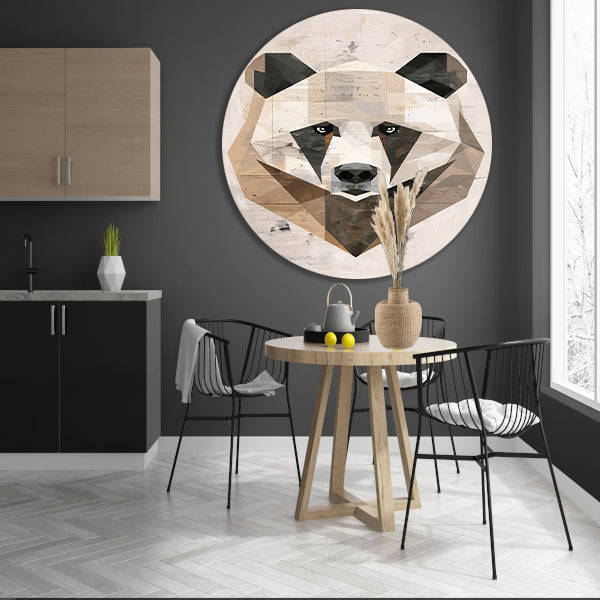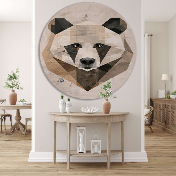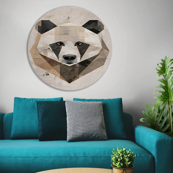 Abstracte Beer in Geometrische Kubistische Stijl aluminium muurcirkel
