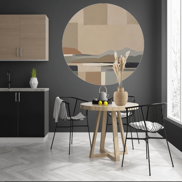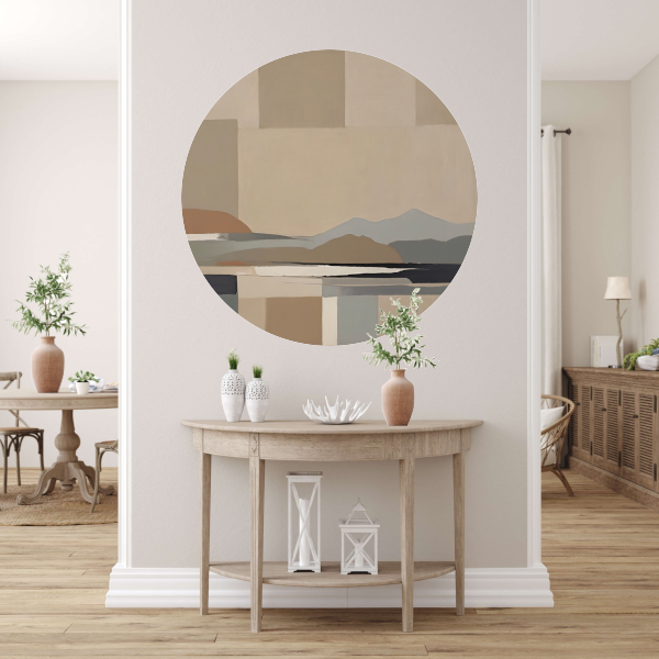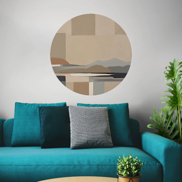 Abstracte Beige Berglandschap in Monochrome Tinten aluminium muurcirkel