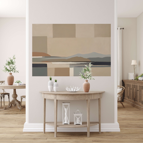 Abstracte Beige Berglandschap in Monochrome Tinten canvas met baklijst