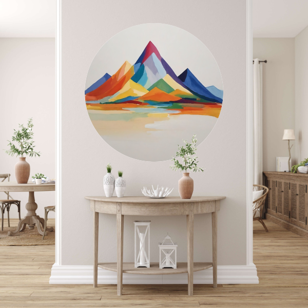 Abstracte Bergen in Levendige Kleuren aluminium muurcirkel