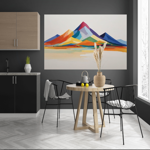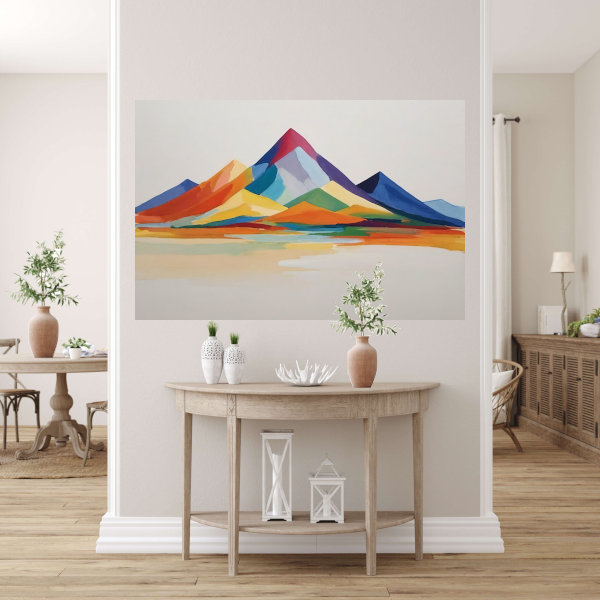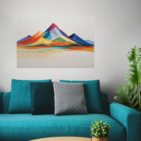 Abstracte Bergen in Levendige Kleuren canvas met baklijst