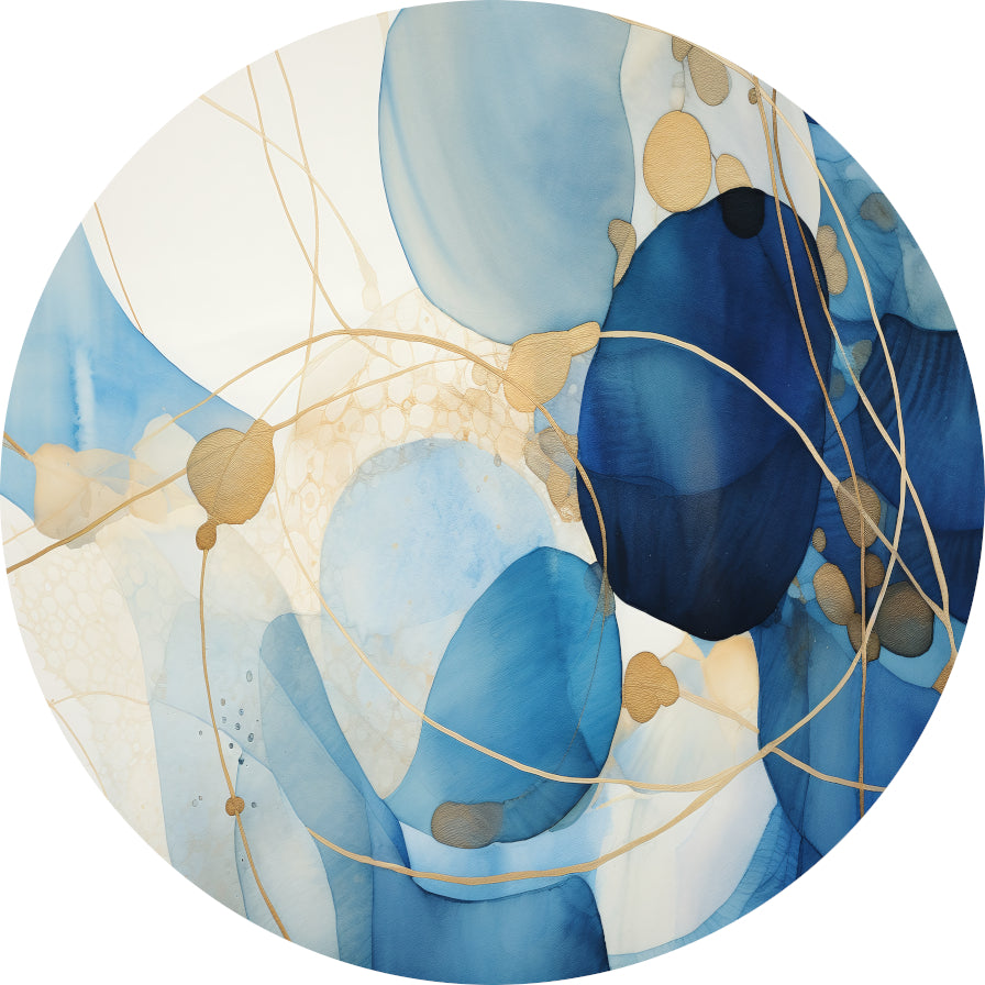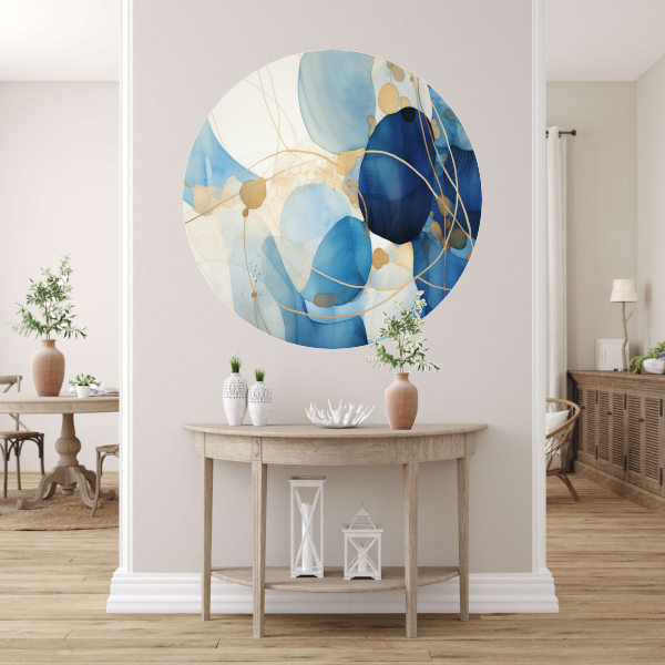 Voeg een vleugje kunst toe aan je woning met deze prachtige Abstracte Blauw en Goud Waterverf forex muurcirkel en geniet van de luxe uitstraling die het aan je interieur zal geven.