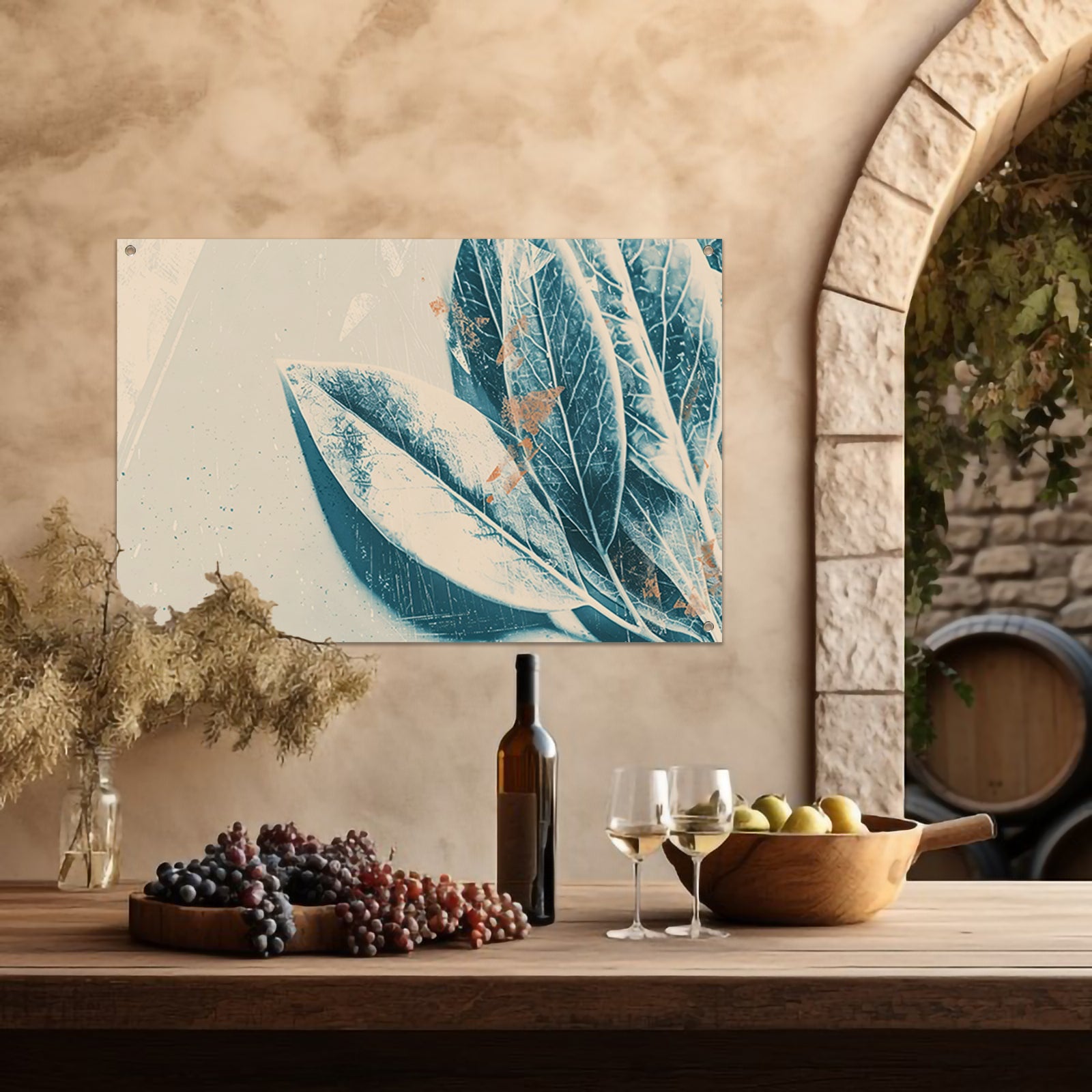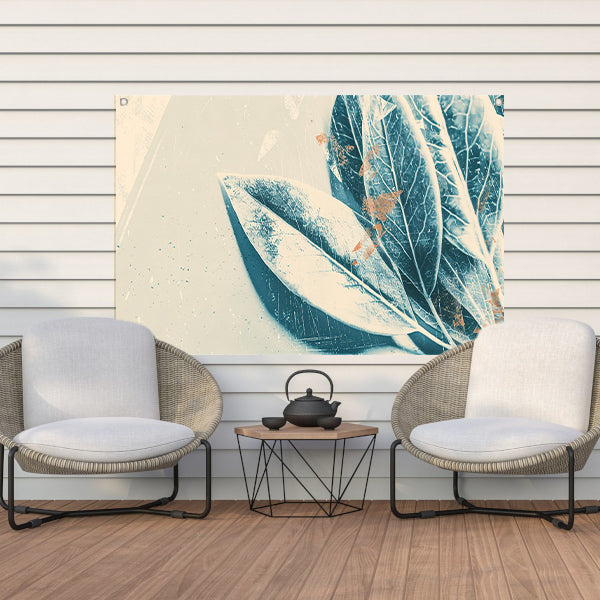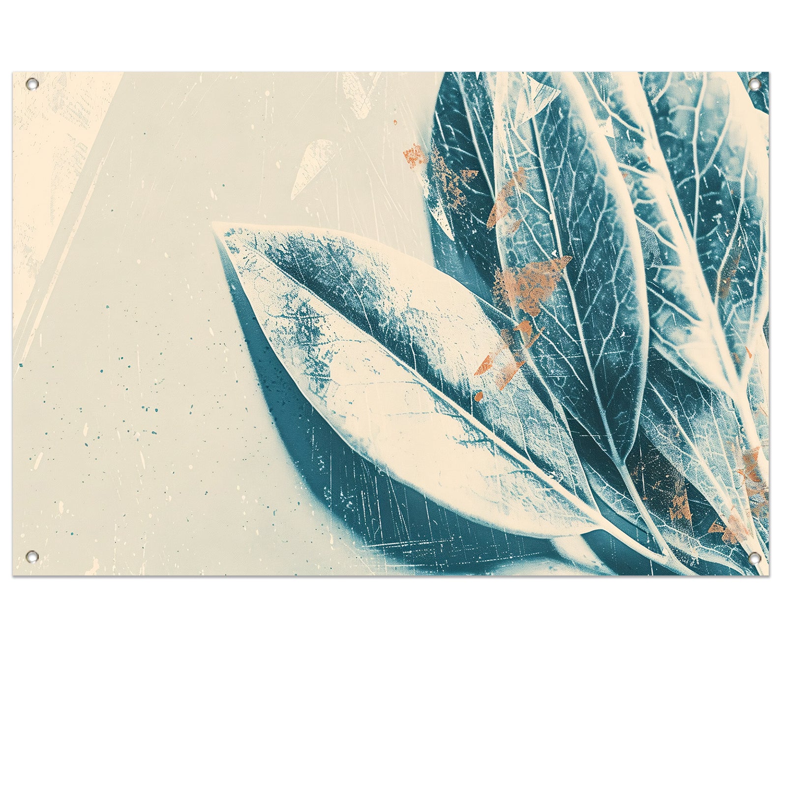 Abstracte blauwe bladeren aquarel kunstwerk tuinposter