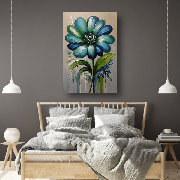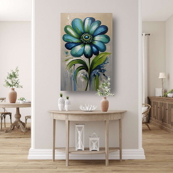 Voeg een vleugje kleur en stijl toe aan uw interieur met deze abstracte blauwe bloem met groene bladeren op acrylglas. Een unieke en decoratieve toevoeging aan elke kamer in uw huis. Bestel vandaag nog en haal dit prachtige kunstwerk in huis!