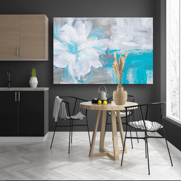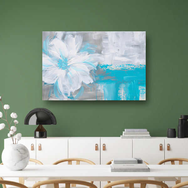 Abstracte blauwe bloem op witte achtergrond canvas met baklijst